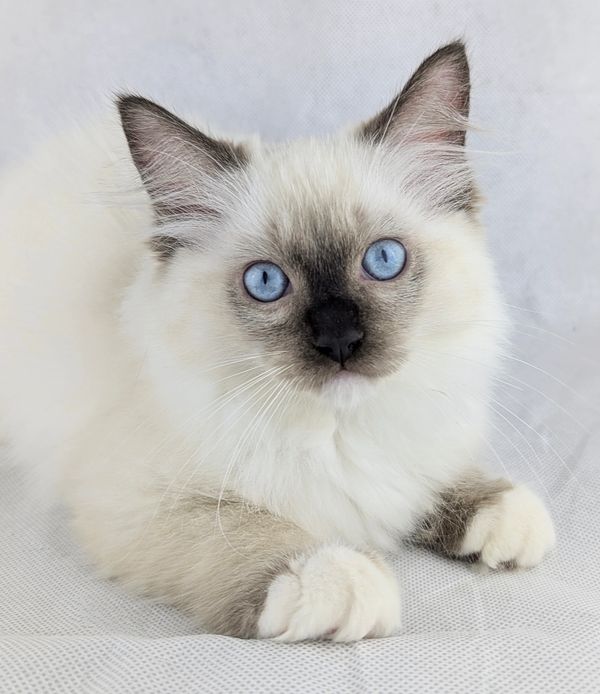 Traditional Ragdolls have light colored bodies & blue eyes. They are the most common Ragdolls found.