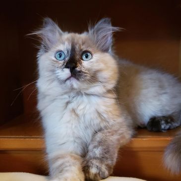 A soft brown/gray color. Fawn is the dilute of cinnamon. It is the least common of all the Ragdoll colors.